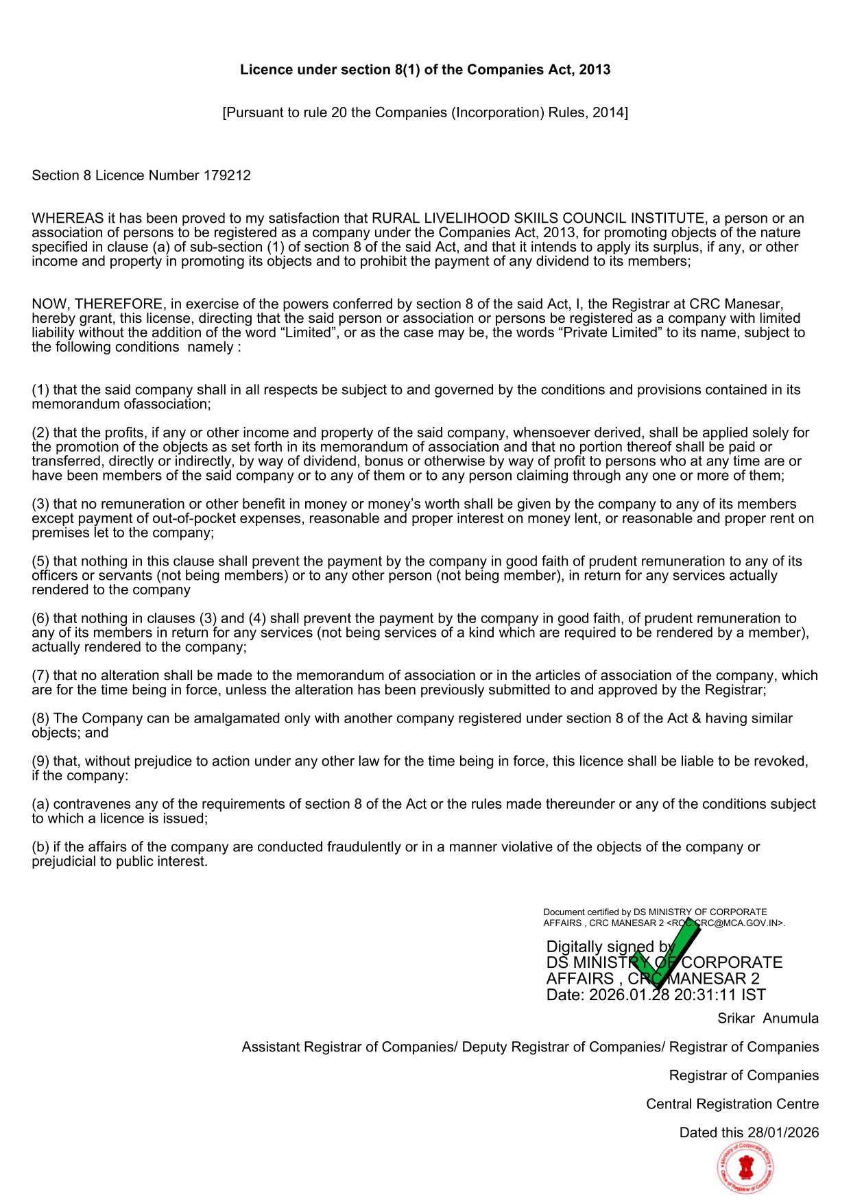 CRC Team, Ministry of Corporate Affairs